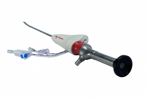 The single-use sheath is designed with an expandable working channel to permit ease in instrumenting with continuous flow to allow visualisation during therapeutic applications.